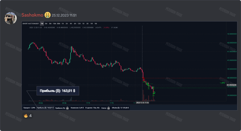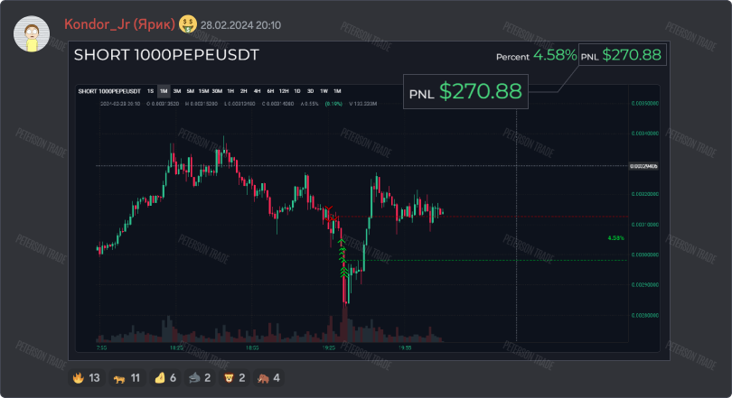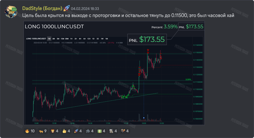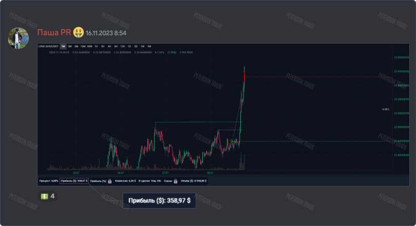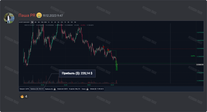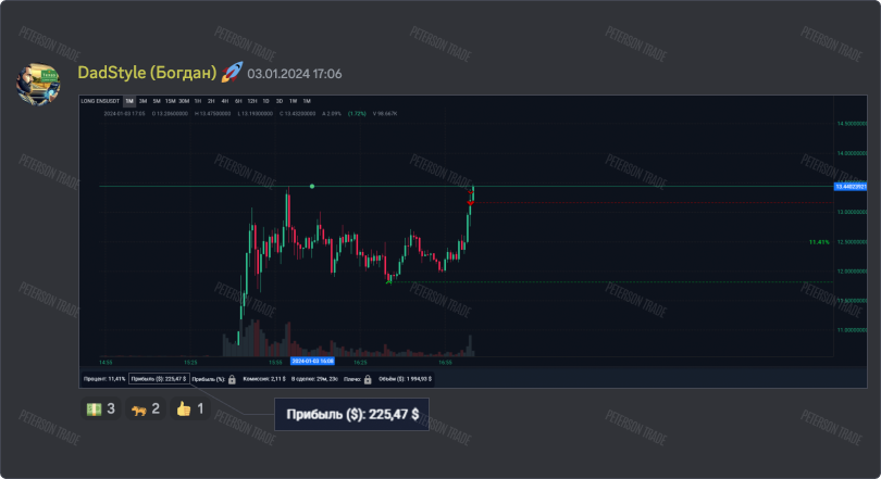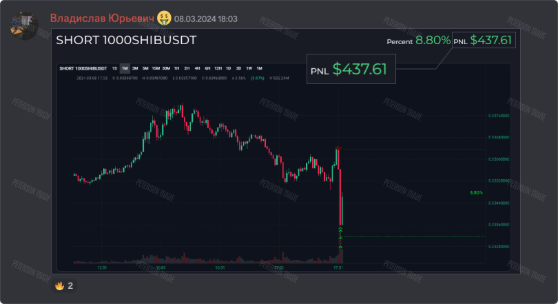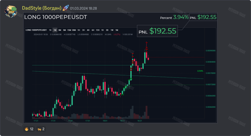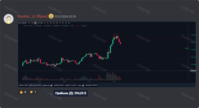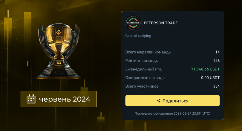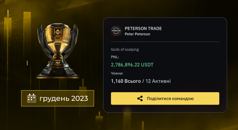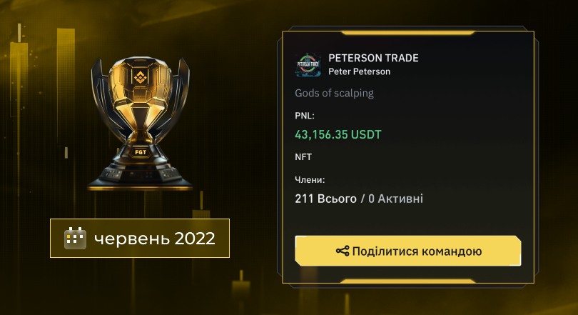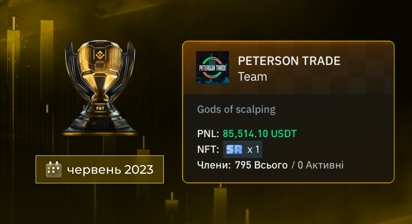 Peterson Trade – перша в Україні трейдингова компанія у напрямку Скальпінгу криптовалют. Ми є офіційними партнерами найбільшої у світі криптовалютної біржі Binance та інших ТОП 10 бірж. Компанія заснована у 2020 році, з початку свого шляху і до тепер ми відкрито демонструємо свої результати на світовій арені трейдингу. За час існування компанії, ми створили ком’юніті з більш ніж 5 000 участників та навчили більше 2 500 студентів. Найкращий результат наших учнів та трейдерів ми продемонстрували на світовому турнірі Binance, зайнявши 11 місце у світі, та заробили 2 800 000$. Наш підхід – це виключно практика та лайв торгівля, ми впевнені в тому, що тільки так можливо досягти мети в трейдингу.